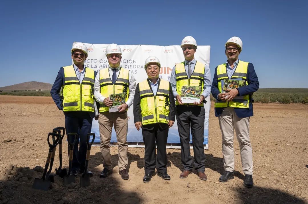 在奠基仪式上,叶建春省长、安达卢西亚大区工业代表卡洛斯·加西亚·吉梅内斯、304永利科技副总裁睿维等持握铁锹为项目奠基石培土。并按照当地传统,将装有当天报纸和硬币的盒子埋入项目工程现场。